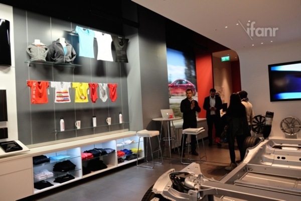 Tesla 在英国的试驾非常方便,只需要在官网上申请试驾并留下联系方式后,第三天我们便收到体验店员工的确认电话了。目前 Tesla 在伦敦开了第一家旗舰店,位于伦敦最大的购物广场 Westfield 首层。这家体验店的面积不算太大,场内分别有一辆完整的 Model S 与一架 Model S 底盘展示。其余两边各有一块可触摸的技术展示屏幕,另外还有各种 Tesla 部件(如自行研发的引擎)以及纪念品展示。总体来说,气氛营造得非常出色。