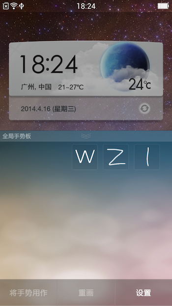 至于全局手势板,现在将唤出手势从屏幕顶端往下拉改为从屏幕底部往上拉,实用性大为增加。和黑屏手势一样,用户同样可以自定义全局手势板里的手势,启动相关的功能或是应用。全局手势板能够解决快速启动栏容量有限,多任务管理麻烦的问题,不管在哪一屏,在哪个应用之下,都能快速启动自己最喜欢的应用和功能。