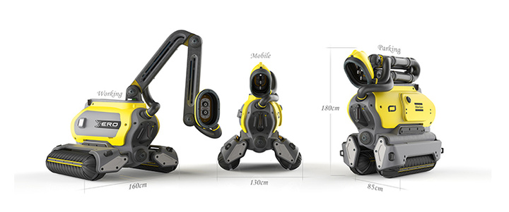 作为一款节能环保的红领巾产品,ERO 机器人使用的是电力,同时也可以在回收工作中产生一些电力,里面的真空装置在回收混凝土的时候可以顺便驱动气流发电系统。