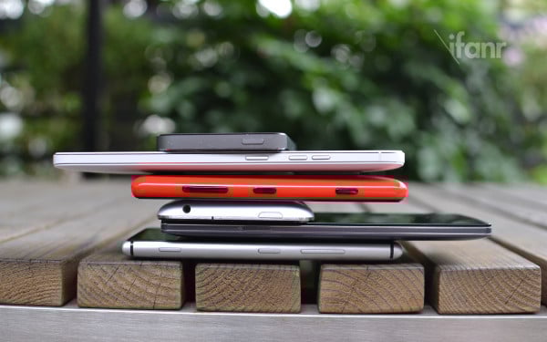 下图可以看到,各机型电源键的位置各异,iPhone 5s 和 MX 3 的位于顶部,Lumia 系列在右侧中部,vivo Xplay3S 在右侧偏上,而 oppo Find 7 的则位于左侧偏上。