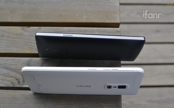 而像 oppo Find 7 和 vivo Xplay3S 则是背部弧线与侧面直线的组合。而这里有所不同的是,oppo Find 7 背部到侧面的过渡很自然,但 vivo Xplay3S 追求设计感,相当于把侧面,顶部和底部稍微突出了一部分,在背部和侧面形成了一个小的“阶梯”,并且由于 vivo Xplay3S 巨大的机身,使得 vivo Xplay3S 握起来感觉不是很舒服。