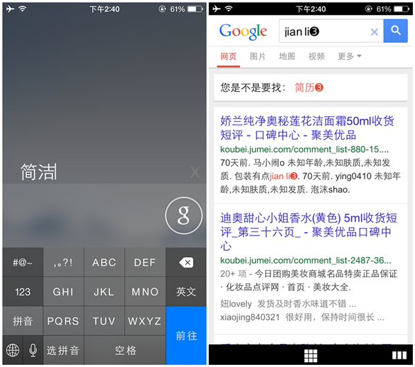 不过在测试过程中,发现搜索这里出现了一个 Bug,即当搜索内容中有中文字符的时候,浏览器会自动判定为拼音字母,最后一位则会判定会数字字符,所以直接在搜索框里输入中文搜索就会出现如下状况。