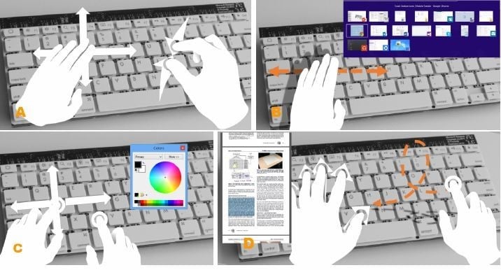 手势识别硬件已经并不怎么稀奇,一定程度上它的确让设备的操控变得便捷。对计算机来说,目前的手势识别设备都需要用户把手举起来,是不是还有更“懒”的手势识别操作方法?近日微软的一个研究团队开发了一个“手势识别键盘”,让你在键盘按键上就能够完成手势识别。