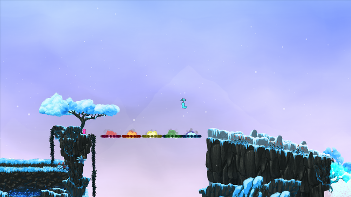 而在 Lost Cold 里面,增加了绚丽的色彩,迷幻的 3D 效果,以及更多技巧和交互。游戏设计很有意思,主人公可收集声音并咏唱唤出五彩云朵楼梯,帮助小伙伴过关,游戏中没有死亡,不会有失败的挫败感,只有纯粹的娱乐体验。