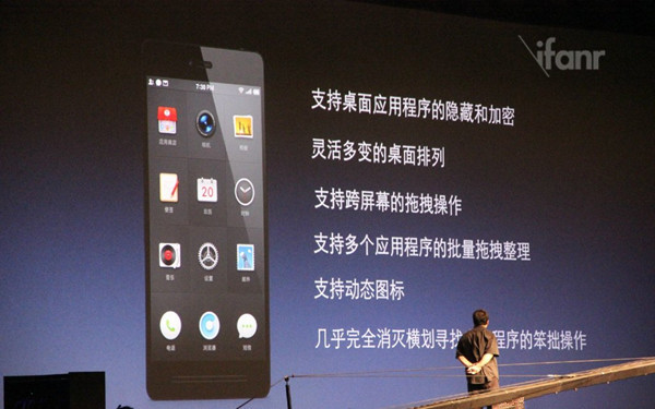 在 81 宫格下,可以更方便的切换屏幕,快速寻找图标。除此之外,整体风格上和此前的 Smartisan OS 并没有太大的区别,罗永浩只是一再强调桌面的效率是目前最高的。