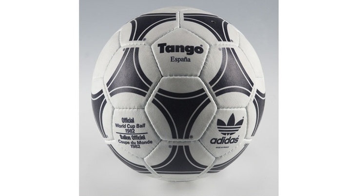 1982 年的世界杯在西班牙举办,这次的比赛用球在外观上和上一届没有什么区别。主要还是技术上的进步,在雨天踢过球的人可能知道,一粒吸水的足球有多难踢。因此这届比赛用球 Tango Espana 在真皮制作的基础上,增添了球的防水效果和密封性,从而大大减弱了球的吸水性,最大程度上控制了球重的额外增加。