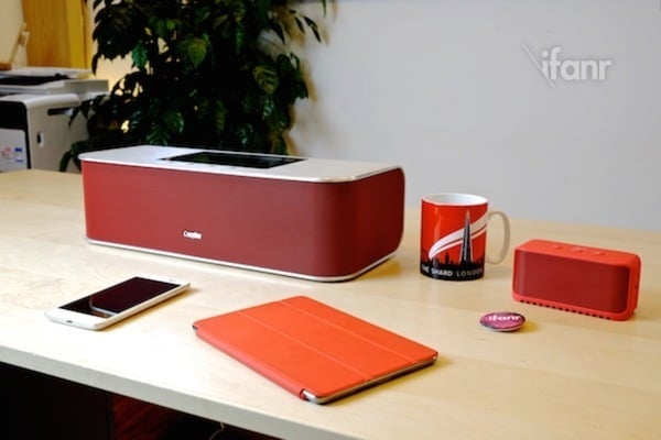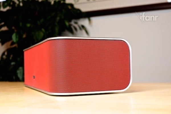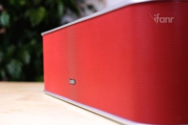 我们还是选择从这款产品的外观开始说起,音响在室内环境其实还需要起到装饰意,拥有一副好的卖相也非常重要。这次我们收到的这款 CrazyBoa 是很骚的红色。产品的做工相当不错,包裹带有英文 logo 的正面、左右两面的音响罩,由一体成型的暗红色金属材质做成;而其余三面,即上、下、背部,则是一整块高精度打磨过的铝合金弯曲而成。