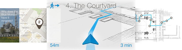 除此之外,使用了导览应用的 Google Glass 还是路痴福音,更可以提供室内和室外导航服务。