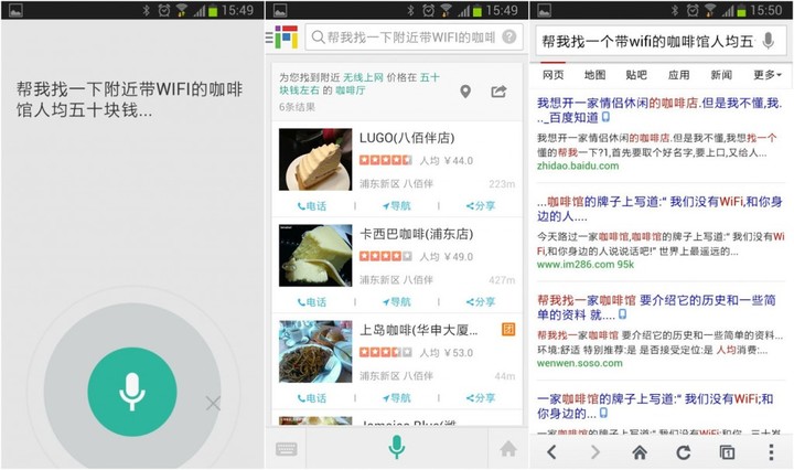 出门问问的优势是,在生活类中文语音识别中,成功率已经超过 90%。并且支持语义化识别分析,比如并非单纯的“找咖啡馆”,而是“找附近带 WiFi 人均 50 以下的咖啡馆”。在目前的 Android、微信以及 Google Glass 上,出门问问在语义分析算法、以及超过 70 项生活应用上拥有长期的数据积累。