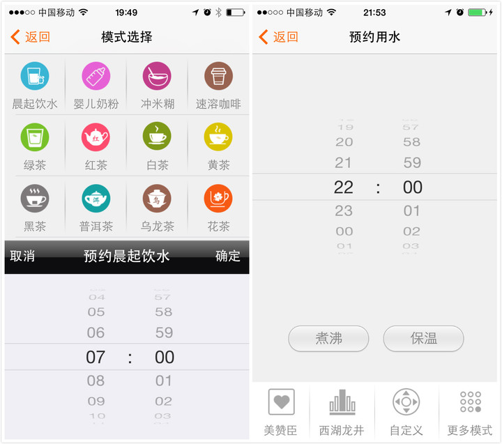 “预约用水”是“小智”实现另一个主打功能的前提——预约婴儿奶粉用水。小宝宝半夜需要喝奶,起床、烧水、等水冷却到相应温度……整个过程还得伴随着婴儿的哭声,对年轻爸妈来说真的很折腾。而“小智”的预约功能,可以设定好大致的时间,这样一醒来就会有合适的水冲泡奶粉。而“小智”APP 内置的“婴儿奶粉模式”中有 32 个奶粉品牌的冲调模式,可满足不同品牌奶粉的对水的要求。