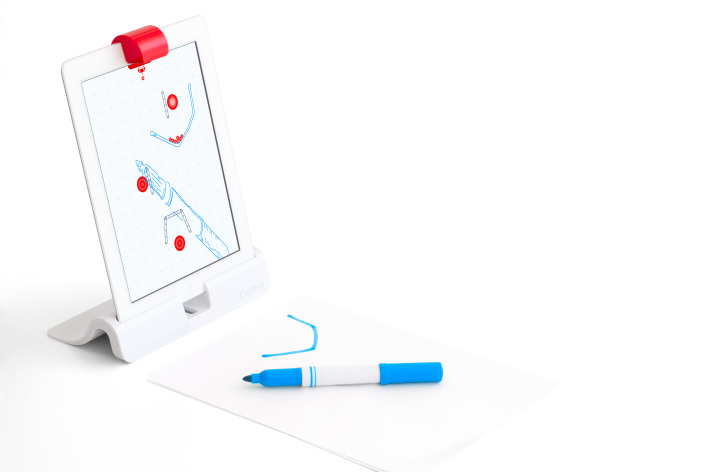 体验“牛顿”时,玩家需要将游戏中不断下降的小球重新定向,让它击中目标物体。你不用在 iPad 上操作,只需用笔在白纸上画出线条,游戏就会根据白纸上的线条自动调整小球的方向。除此之外,桌面上摆放的任何物体——比如笔、玩具,甚至玩家的手指——都可以被 Osmo 扫描、添加到游戏内。“牛顿”是涂鸦游戏和实境技术的结合体,玩家的想象力能够让它绽放出无限乐趣。