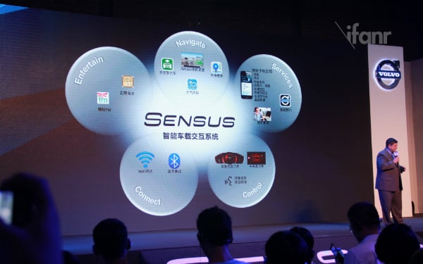 Sensus 是沃尔沃刚刚在中国发布的全新车载系统,核心功能分为两块:智能在线(Sensus Connect)和随车管家(Volvo On Call)。其中随车管家覆盖了多项和驾车紧密相关的功能,比如发动机远程启动/遥控空调、车辆遥控鸣号、远程车辆制动、远程车门解锁、碰撞自动求救等。而智能在线的功能则跟目前一票的车载系统没有太大差异,无外乎导航、音乐、电话、上网。