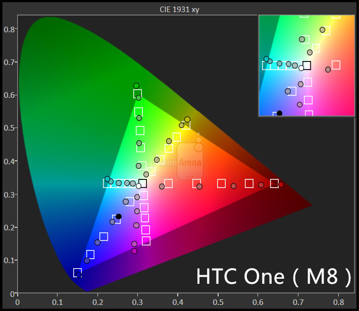色温是影响手机观感的一个重要因素,其中因为供应商不同等因素,单款产品的不同批次之间也往往有着显著区别。在 phonearena 的评测中,以一般意义上的标准白色光色温 6500K 为基准,越接近则成绩越好。