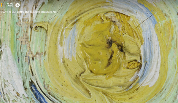 以梵高的名作《星空》为例,Project Art 提供的图片精细度令人惊奇,下面两幅图中,上图是下图红色小框区域的局部放大图。