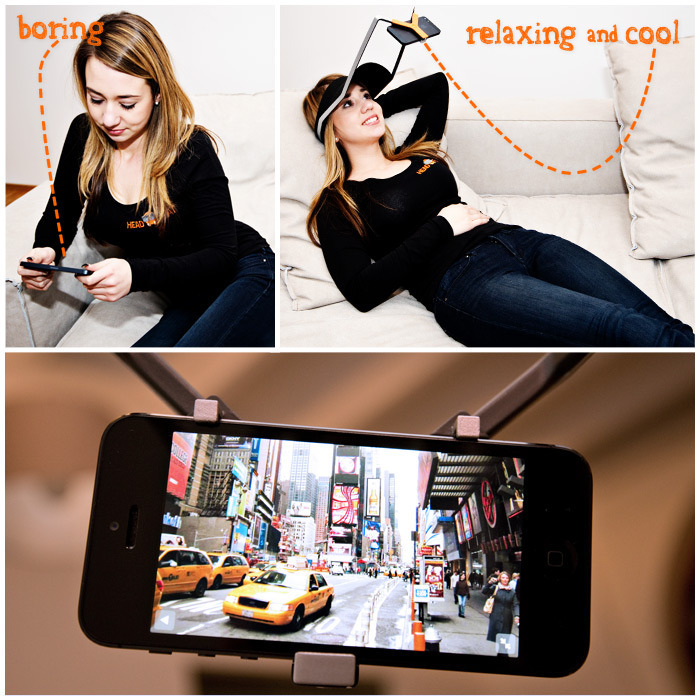 解放双手的手机支架。这个名为 headflat 的项目乍一看十分有趣,它是一个可穿戴的手机支架,也就是把支架放在帽子上,彻底解放双手。不过这东西最好在家里用,如果出门,恐怕又要被当成蛇精病了。