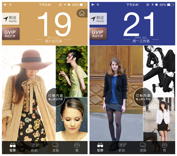 按照采访中美衣地图方给出的答案,他们对于自己应用的定位是“国内首家基于地理位置的智能时尚资讯及额外折扣服务提供者”。事实上,在这个应用中,地理位置,时尚资讯,额外折扣这三个也是美衣地图的核心之处。