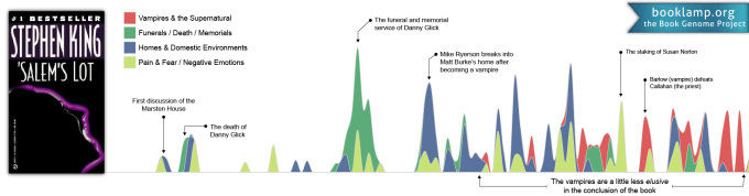 一来,BookLamp 会根据书的内容打标签。比如斯蒂芬·金的《午夜行凶》(Salem’s Lot)一书,BookLamp 会为它打上“吸血鬼/超自然”“葬礼/死亡/纪念物”“家庭/国内环境”“痛苦及恐惧/消极情绪”等标签。