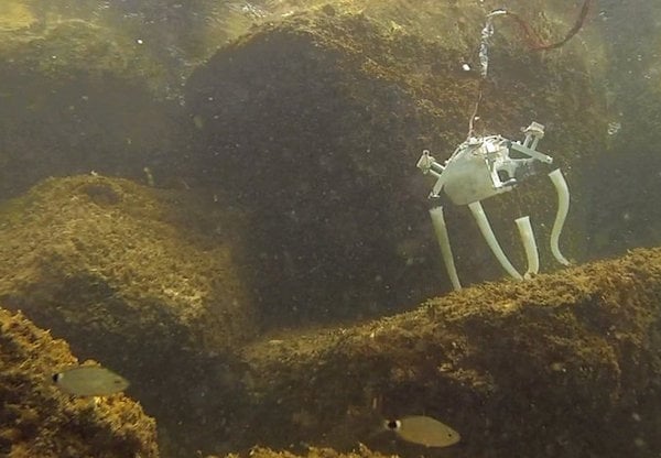 它的动力来自两个不同的直流电机,一个用于爬行,一个用于游泳。PoseiDRONE 的运动方式也模仿章鱼,如果是爬行,它会用到四个腕足,而如果是游泳,它则会喷出水流令自己前进。尽管 PoseiDRONE 在水下工作时,依然需要拖着一条电缆,但是它已经可以自如地在水中游泳,以及在海底的石滩上爬行。