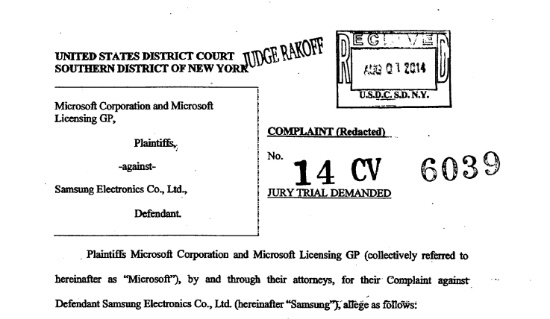 因为上述分歧,本周五微软在美国对三星提起诉讼,指控三星没有履行二者在 2011 年达成的专利授权协议,一直拖延专利授权费的支付。