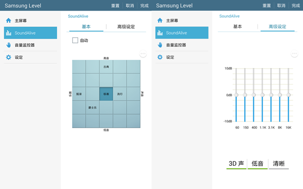 除了这些功能,还有对于声音偏好和参数的基本设定,当然,部分手机也有这样的功能。不过这个功能对于音质偏素净的 Level Over 用处倒是比较大,就像往清水中加盐一样。