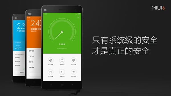 日益严峻的手机安全问题对手机系统层面的安全保护提出新的挑战,Android 手机更是如此,许多厂商内置了安全软件,MIUI 6 也是如此,添加了安全应用,提供了安装应用前扫描查毒。安装未知来源应用时,预先扫描安装包;发现问题及时预警,阻止安装;垃圾清扫;网络助手等功能。