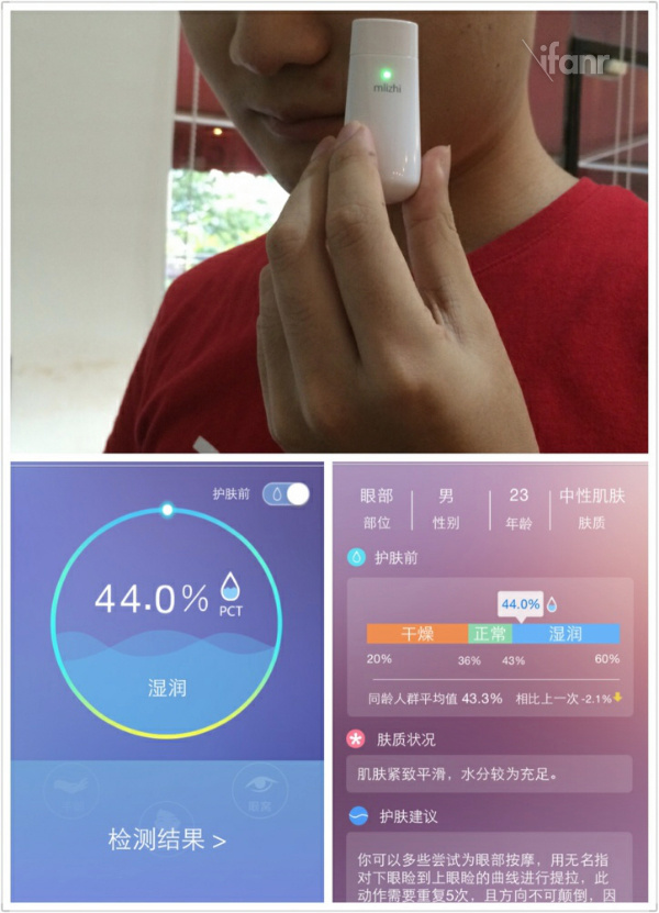 帮助检测化妆品功效。身边有些土豪朋友没事总爱买各种皮肤保养品,但是要知道,贵的不一定就是适合的。有时候光凭感觉也不好判定到底哪款化妆品好用。使用一款化妆品后,可以用 Mlizhi 进行跟踪检测,如果肌肤越来越好,就不用再花冤枉钱买朋友圈里推荐的那些新品了。