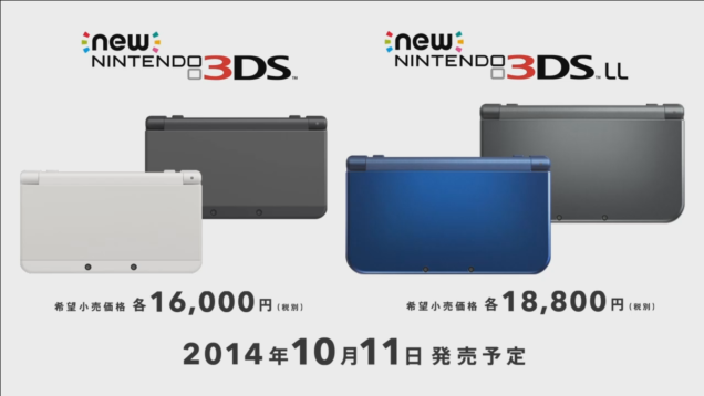 两款新机将于 10 月 11 日在日本首发,New 3DS 定价 16000 日圆,New 3DS.LL 定价 18800日圆,在此之后,任天堂的新游戏《异度之刃 X》也会登陆两款新机,而由于此款游戏对 CPU 性能要求过高,预计不会面向旧版 3DS。