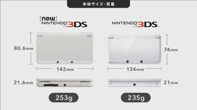 首先,两款新机的体积都大过旧版,重量稍有增加,电池的使用寿命也更长,这似乎是任天堂游戏机版本更新中的传统要素。