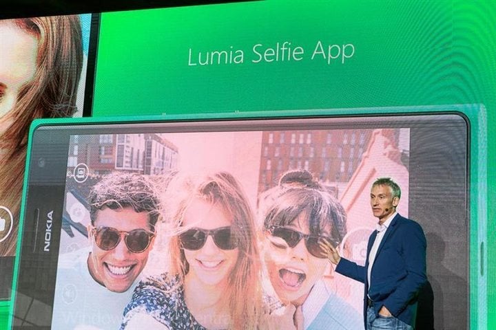 在大会上,微软特意提到了 Lumia 735/730 的自拍,正如之前的报道称,这是微软第一部主打自拍概念的手机,搭载了 500 万的前置摄像头,但其拍摄角度更广,可以拍下更多的人脸,方便团体自拍。大会中还对奥斯卡颁奖典礼中主持艾伦发起的的群星自拍作出吐槽,指其为“糟糕的自拍”。