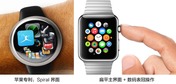 本周面世的 Apple Watch 并没有采用看起来更酷的 3D 螺旋式界面,而选择了更为保守的扁平主界面+数码表冠(Digital Crown)的操控方式。哪怕满是圆形图标的主界面被人吐槽为“密集恐惧症患者的噩梦”。