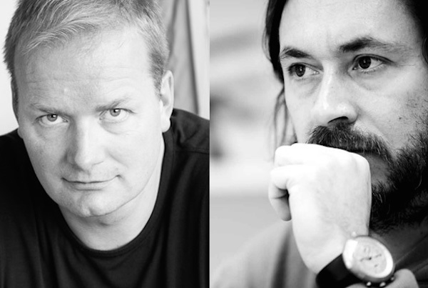 图中左侧为品牌创始人 Oliver Ike,右边为佩戴着 IKEPOD Horizon 手表的 Marc Newson