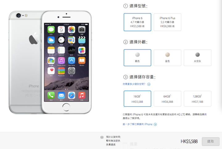 中国大陆没有被划在首发国家之中,这也意味着不少大陆用户纷纷在苹果香港官网预定。同样的,香港官网的 iPhone 也缺货严重,iPhone 6 要在 10 月发货,两款机型目前已经无法接受预定。