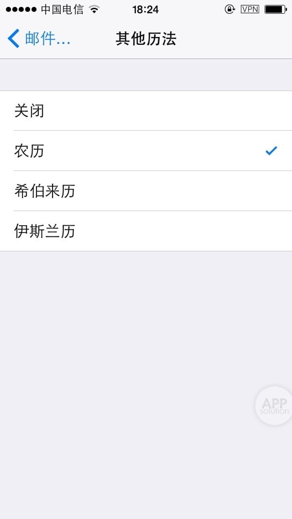 农历:每次给别人推荐日历 app 都被问“有没有农历”,这下 iOS 日历自带了。打开方法:设置 —— 邮件、通讯录、日历 —— 其他日历 —— 农历。