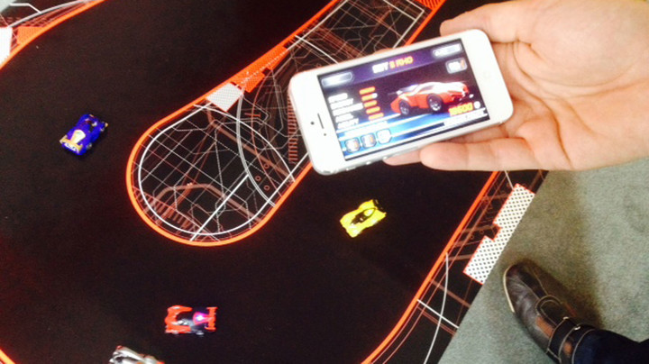 整个汽车通过内置的蓝牙 4.0 模组与 iPhone 上的 app 连线。小汽车通过相机读取赛道上的光学编码信息,然后车子自己会自动调整速度,照着赛道前进,你只需要控制的是何时加速、何时超车、何时发射武器等战略性动作。