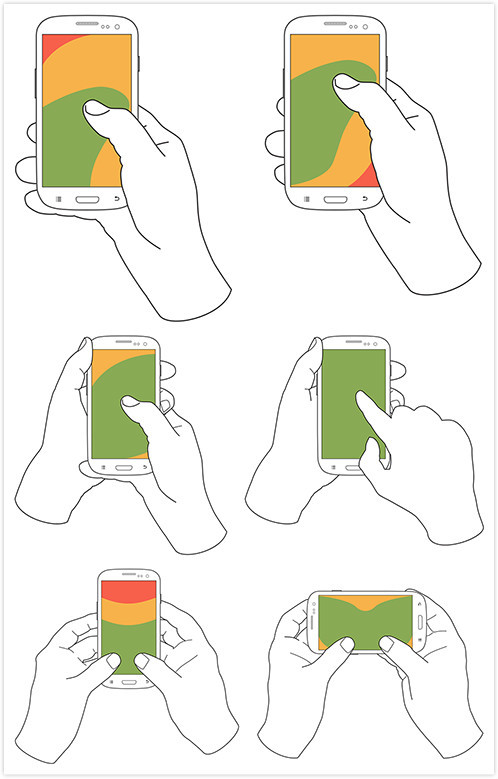Steve Hoober 在对 1300 多个用户进行调研后发现人们拿手机的方式分为三种: