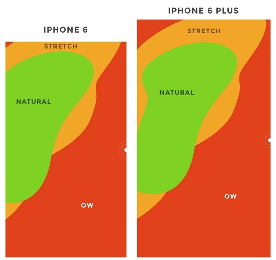 iPhone 6 和 iPhone 6 Plus 屏幕的变化,会导致人们持握手机和操作习惯的改变。这就意味着开发者在进行应用设计时,应当尽量根据用户新的使用习惯做出调整。