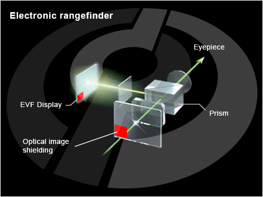 优势是当用户使用光学取景器摄影时,右下角的电子取景画面能够提供对焦辅助,实现类似胶卷单反式的裂像手动对焦。