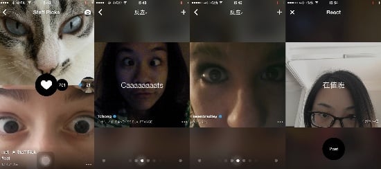 最新的一次更新中,Frontback 添加了名为 “React” 的回复。Techcrunch 的 Romain Dillet 认为此次更新添加的自拍回复功能“让整个图片社区活跃度增强了许多”。在 Frontback 上,轻轻一划,你就可以对全球用户的照片进行回复。收到这种图文并茂的回复,的确比单纯的文字、表情更能给人亲切感。
