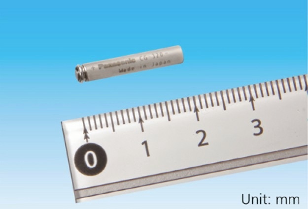 CG-320 电池规格为 20 x 3.5 mm,重 0.6g,电池容量 13 mAh、电压 3.75 V,是目前市面上最小的圆柱形可充电锂电池。电池外部是不锈钢材质的保护套,以防止电池膨胀。Panasonic 表示此款微型电池可靠性高,且具有近场通信(NFC)和连接蓝牙所需的高输出功率。