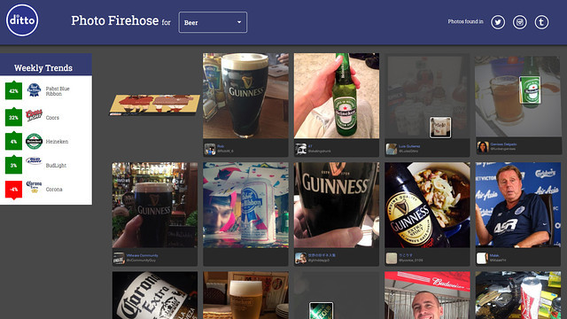 食品业巨头,同时也是广告大户的卡夫就委托 Ditto Labs 在 Tumblr 和 Instagram 中寻找带有他们产品标识的照片。Ditto Labs 公司的软件可以根据照片来追踪用户习惯,比如分析用户在吃通心粉和奶酪的时候喜欢配什么饮料,并且能识别用户笑了没,判断当前的情绪状况。基于类似的分析结果,卡夫就可以调整线上的广告策略,找准目标用户。