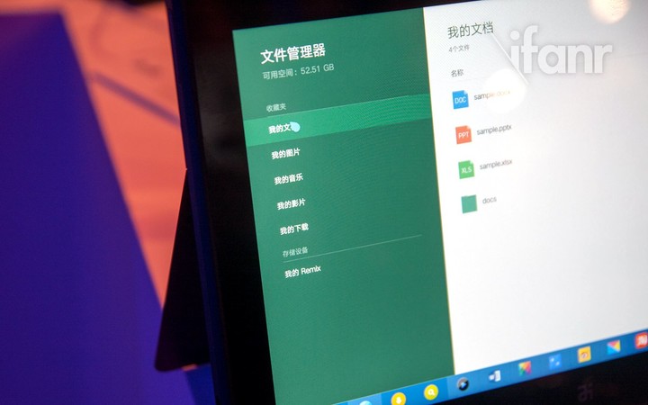 外观上的争议并不妨碍 Remix 成为一款有特色的产品。在系统上,全局扁平化的风格设计,底部有一条任务栏,已经安装的 app 会显示在主界面上。ALT + Tab、CTRL + C、CTRL + V 等快捷键的设置也一并向 Windows 的操作方式和操作习惯靠齐。这些功能设计无疑降低了用户移动办公的学习成本,提升了 Remix 的办公效率。