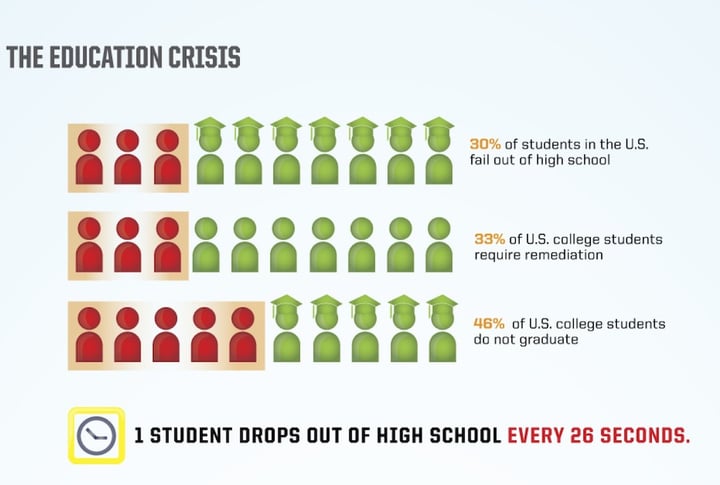 - 美国高中生退学率达 30%