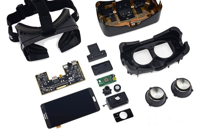 现有公开发售的 Gear VR 产品被称作是 Innovator’s Edition,主要面向早期的尝鲜者,他们能够容忍技术或者是体验上的不完美。Oculus 与三星的合作也算是顺理成章的事情,ifixit 在拆解时发现 Oculus Rift DK2 直接使用了 Galaxy Note 3 上的 5.7 英寸 1080p 显示屏面板作为显示器。不久,三星发布适配 Galaxy Note 4 Gear VR 产品,由三星负责硬件设计,Oculus 负责提供技术和软件开发。