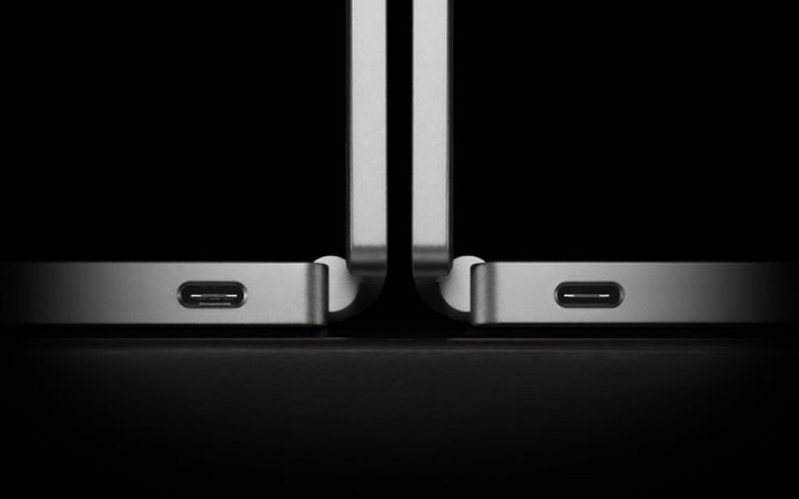 和 12 寸 MacBook 一样,Chromebook Pixel 也加入了 USB-C ,不过 Google 并没有苹果那般激进,在两个 USB-C 接口之外,还提供了两个标准的 USB 3.0 以及一个 SD 卡卡槽和 3.5mm 音频接口,舍弃了 HDMI。USC-C 在 Chromebook Pixel 上也同时担负着充放电、数据传输的角色,也就是说 Pixel 也是通过 USB-C 接入电源的。