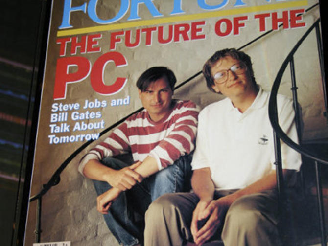 上面说到的一些细节都是 FastCompany 披露的,不过这样难怪,《成为乔布斯》的联合作者之一 Rick Tetzeli 就是 FastCompany 的资深编辑,而另外一位主要作者,Brent Schlender 于 1978 年开始,在《华尔街邮报》和《财富》杂志任职。那时正是硅谷早期勃发之时,那时候的 Brent Schlender 也与一些硅谷传奇熟识,比如 1991 年盖茨和乔布斯的会谈就是他一手促成的。是年,乔布斯 36 岁,盖茨 35 岁,当时还算年轻的他们登上了《财富》杂志的封面,标题则是《PC 的未来,乔布斯与盖茨共谈明天》。