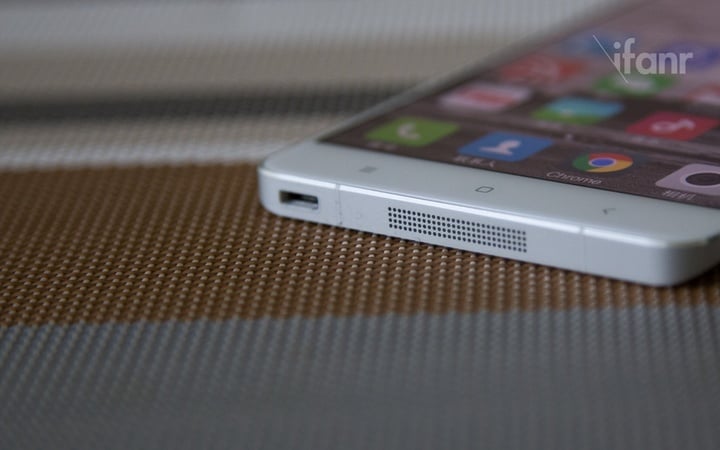 按键布局也大体一致,左侧上方是插槽,右侧是音量键和电源键,耳机插孔设计在了顶部,底部则是 USB 接口和扬声器。小米 Note 抛弃了小米 4 上采用的奥氏体 304 不锈钢,转而使用了铝合金材质的金属中框,质量更轻,而且在手感上要更加温润一些,色泽也更加明亮。