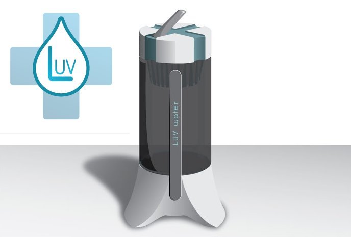 LUV water 项目目前还在实验室阶段,设计来自卡耐基大学的 Integrated Innovation Institute 的四位学生。该系统通过水的重力势能供电驱动紫外线发射器杀菌,可以杀灭水中 99.9% 的病原体。除了上面这个大家伙,另外还有一个便携水壶版的产品。