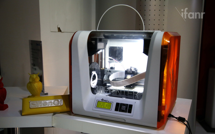 这次的体验会上,意料之外的惊喜是现场的一台持续打印神奇工场 logo 的桌面 3D 打印机。这台打印机是来自三纬国际的 da Vinci Junior。整个机器的体积像是一台稍高一点的微波炉,重量为 12 公斤,喷头直径可以在 0.1~0.4mm 之间调节,最大可打印尺寸为 15×15×15cm。产品将在 4 月 8 日左右登陆神奇工场首销,售价则为 1999 元,可以用于教学和娱乐,或者是给孩子打印一些小玩具。低廉的价格对于普及 3D 打印的概念还是比较有吸引力的。三纬国际现场负责人告诉爱范儿,首销的 3D 打印机数量有限,在 300~500 台左右。