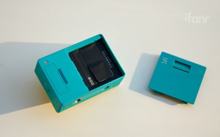 我手里这款小蚁运动相机是丛林绿款,但我对这种花花绿绿的配色着实无爱,像是廉价的小玩具。不过,整机的体积真的非常小巧,虽然达不到官方宣传的火柴盒大小,但是确实可以轻松地塞到衣服口袋里,重量也只有 72 克,可以轻松地把它握在手心里。
