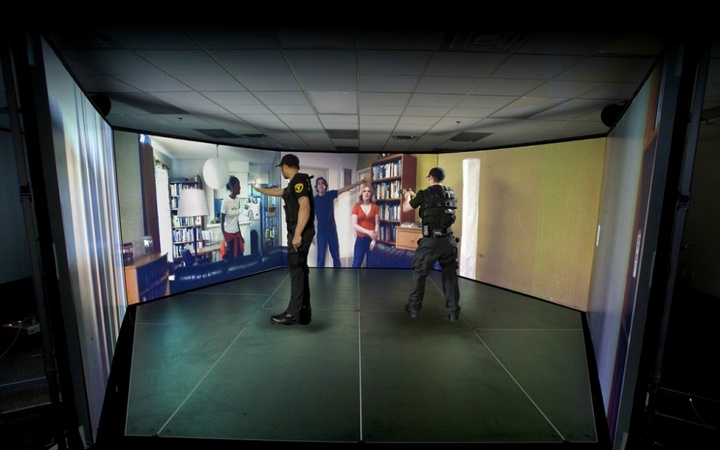 近日,《连线》杂志的记者体验了美国新泽西州的公共安全训练营里的虚拟现实训练。该训练营采用的是 VirTra 提供的虚拟现实技术和设备,不过这套新的训练系统主要目的不是训练警察枪法的精准度,而是要培养警察“什么情况下才应该开枪”的判断力。